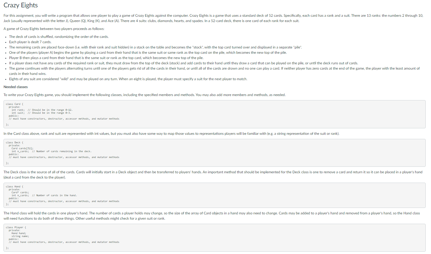 Solved Crazy Eights For This Assignment You Will Write A Chegg Com